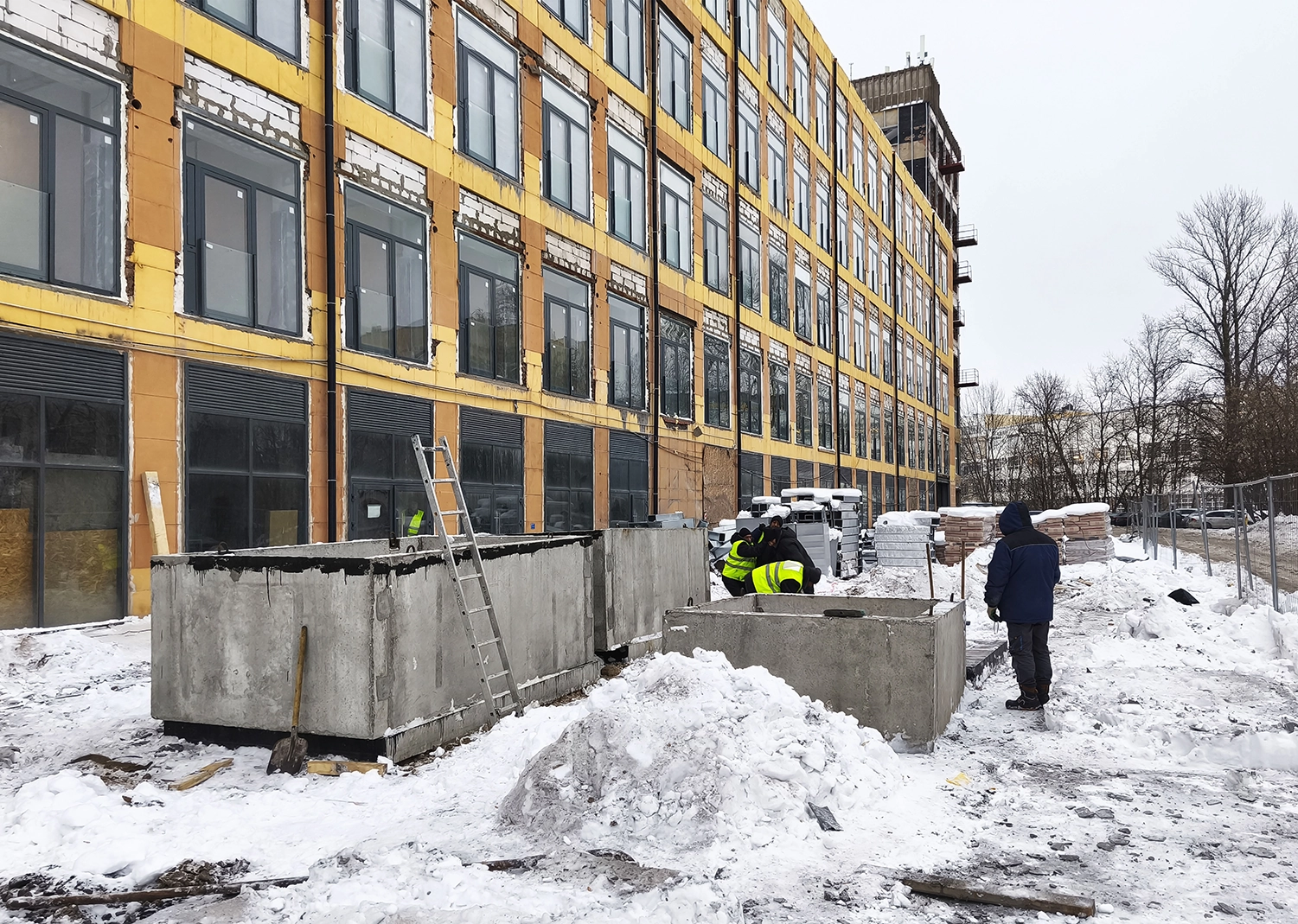 — Ведётся монтаж системы водоснабжения и водоотведения (2 корпус).