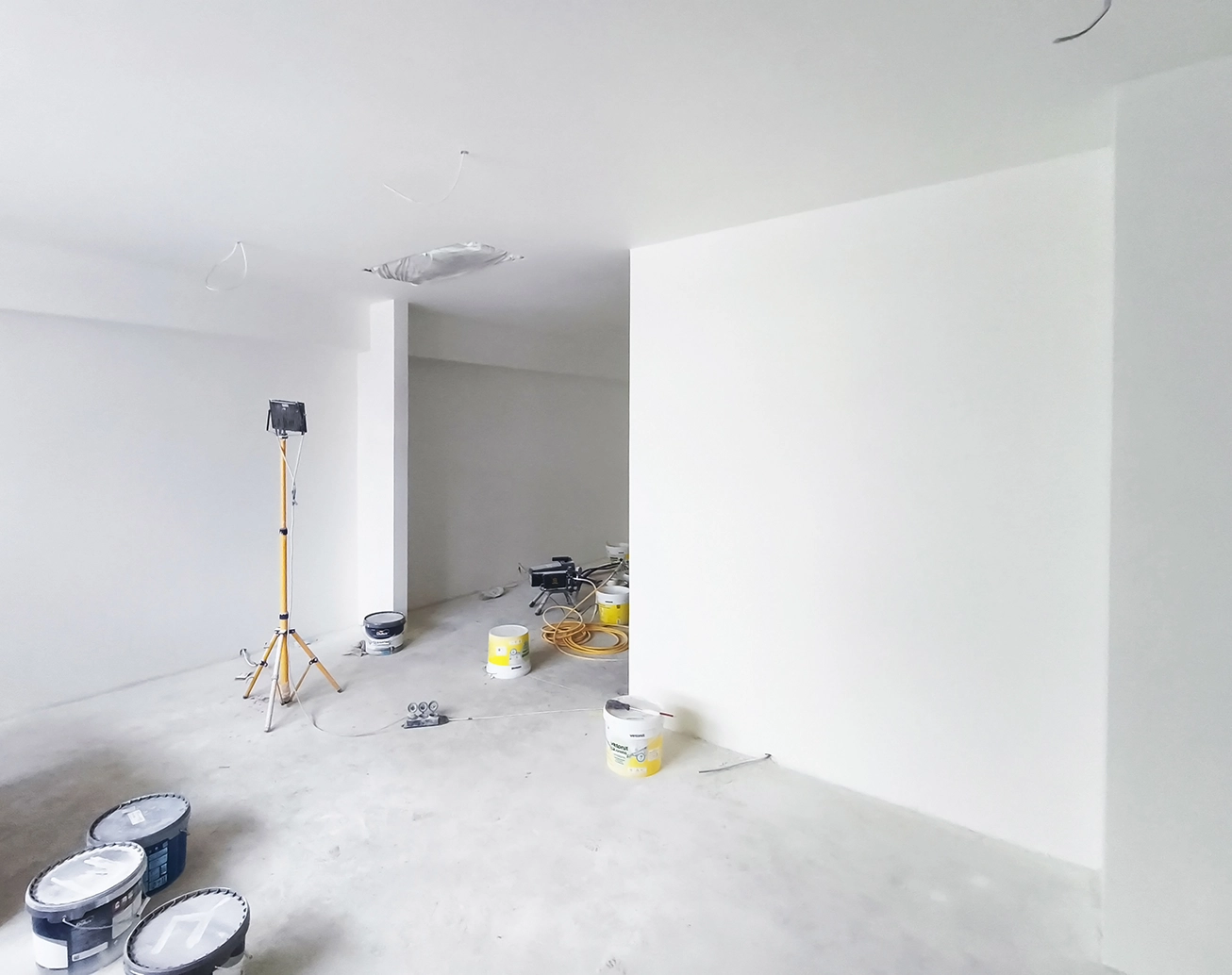 — Продолжаем монтаж кабельных трасс.-Провели пробный окрас стены в пилотном номере.